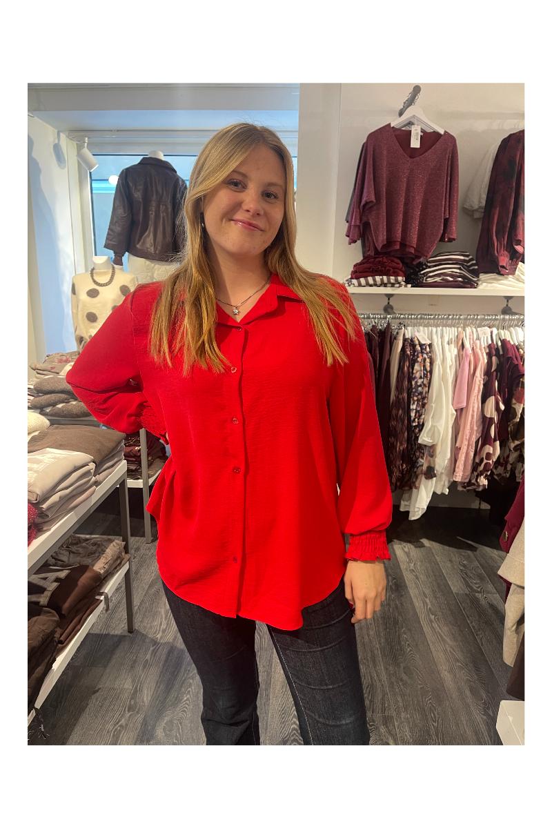 Perfekt basblus med smock i ärmen.