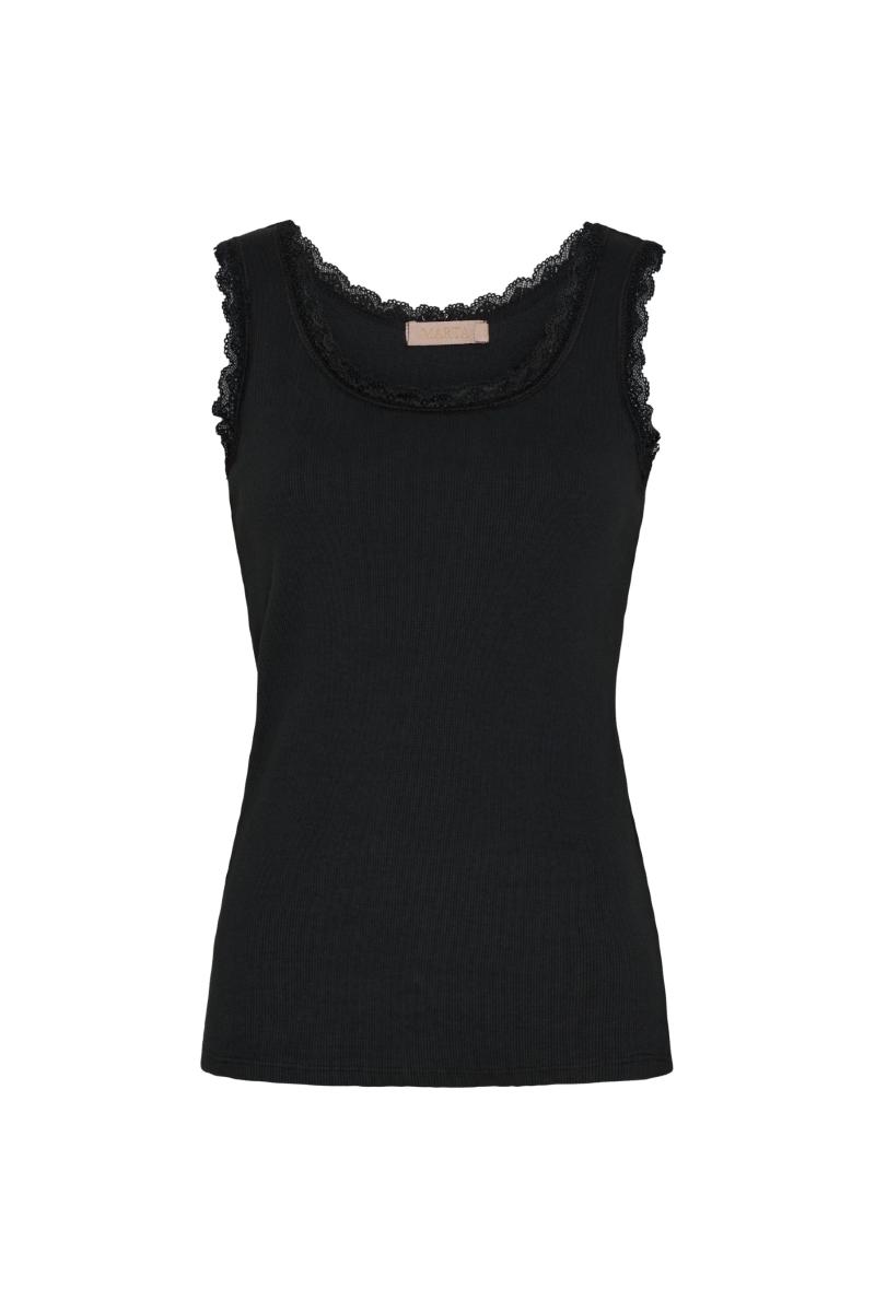 Ribbat linne med spetskant