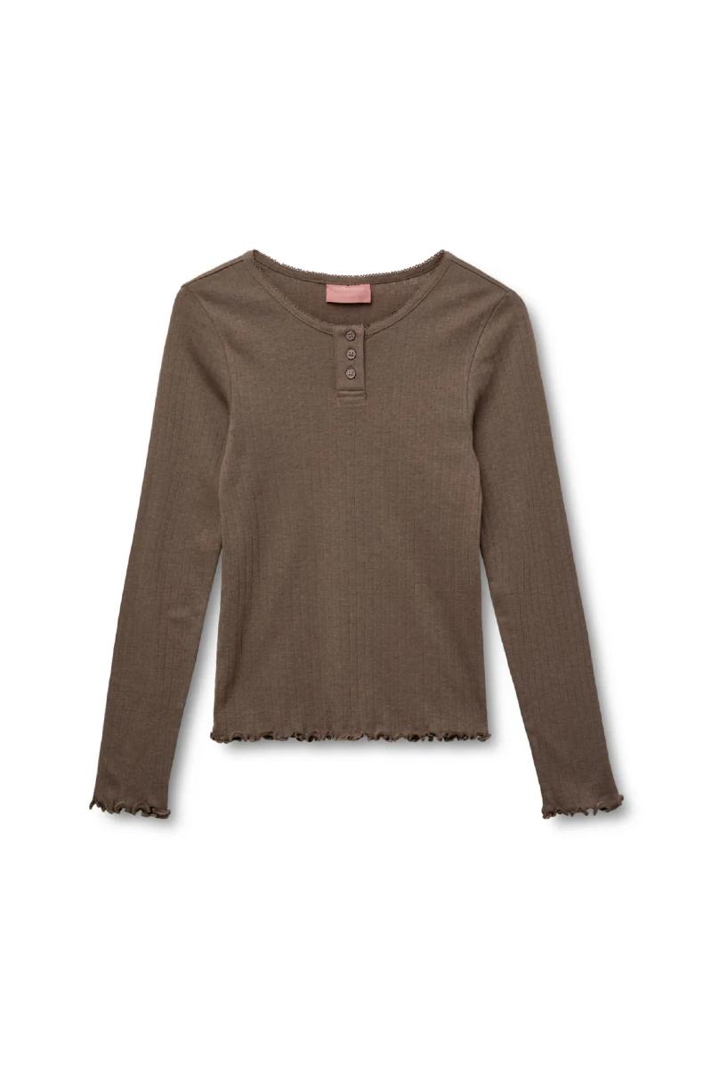 Mjuk mysig baströja med knappar i halsen.