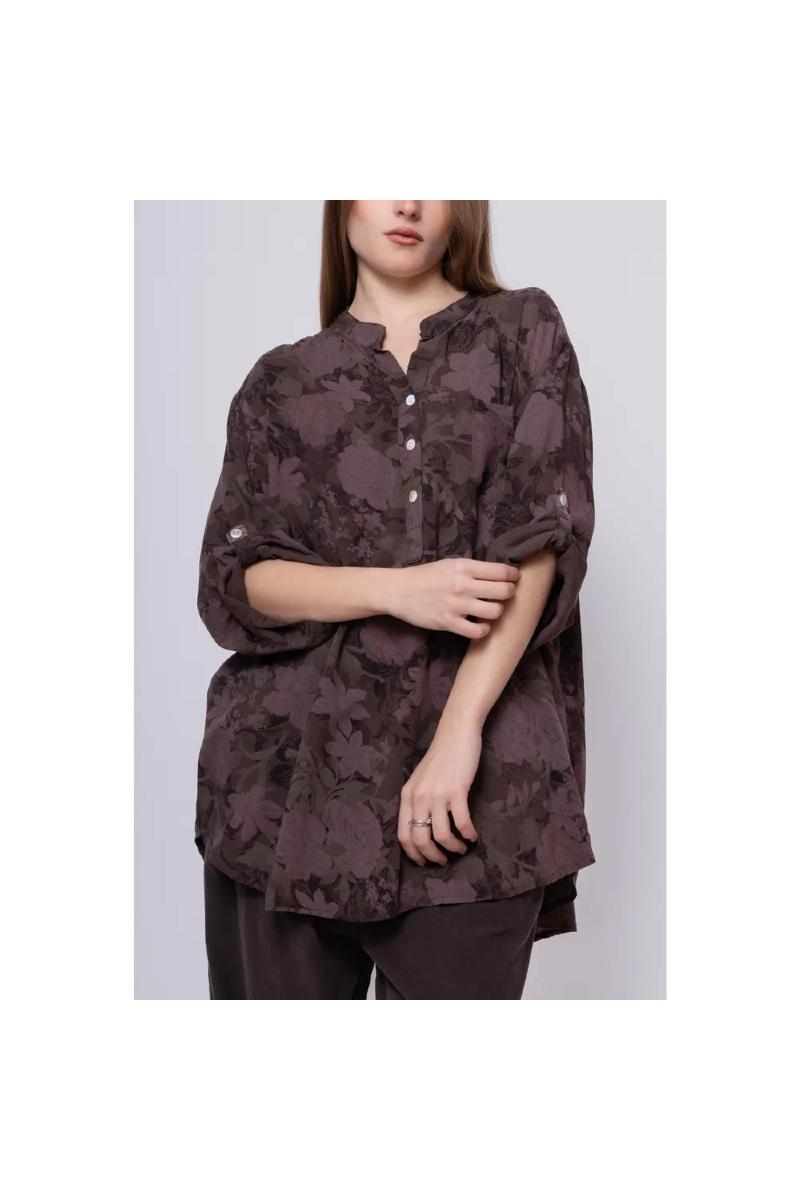 Mönstrad blus med bröstficka.