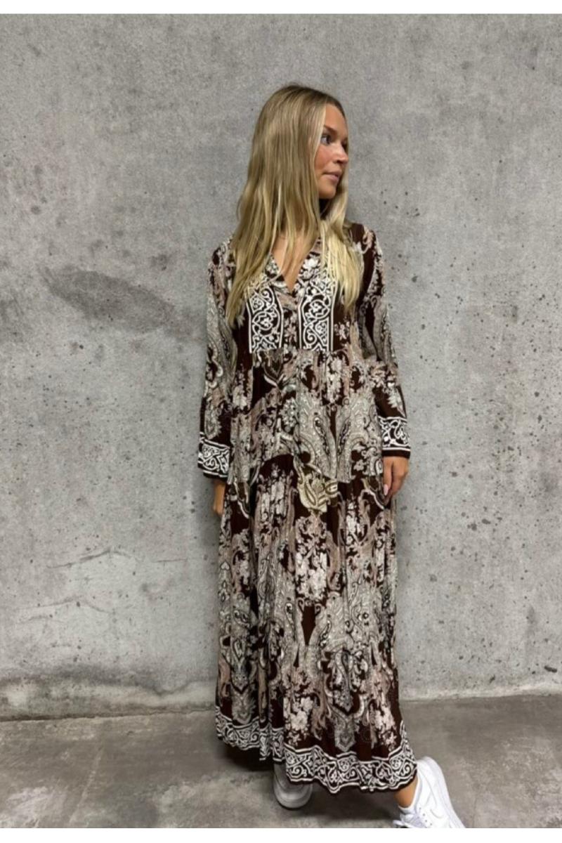 Marrakech är en mjuk viskosklänning med ett varmt print inspirerat. Perfekt för höst och vinter, med en bohemisk och sofistikerad känsla som passar både vardag och fest.