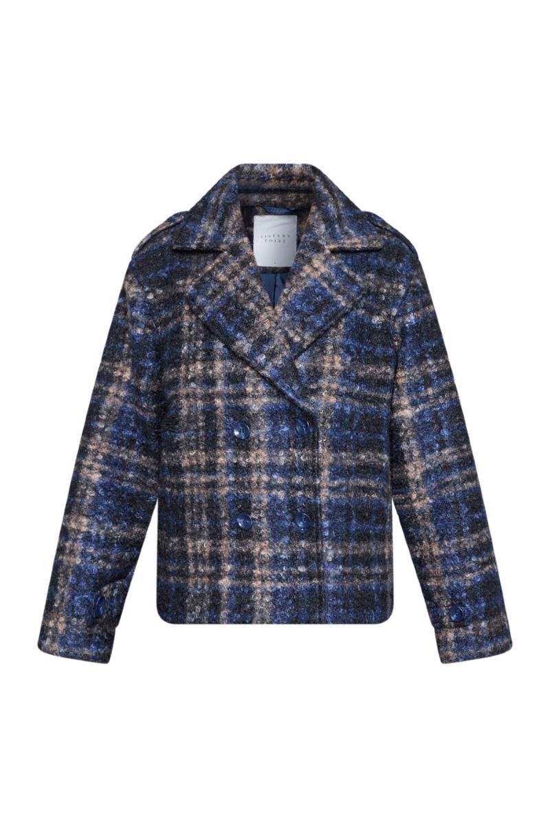 Kort jacka med dubbelknäppning.