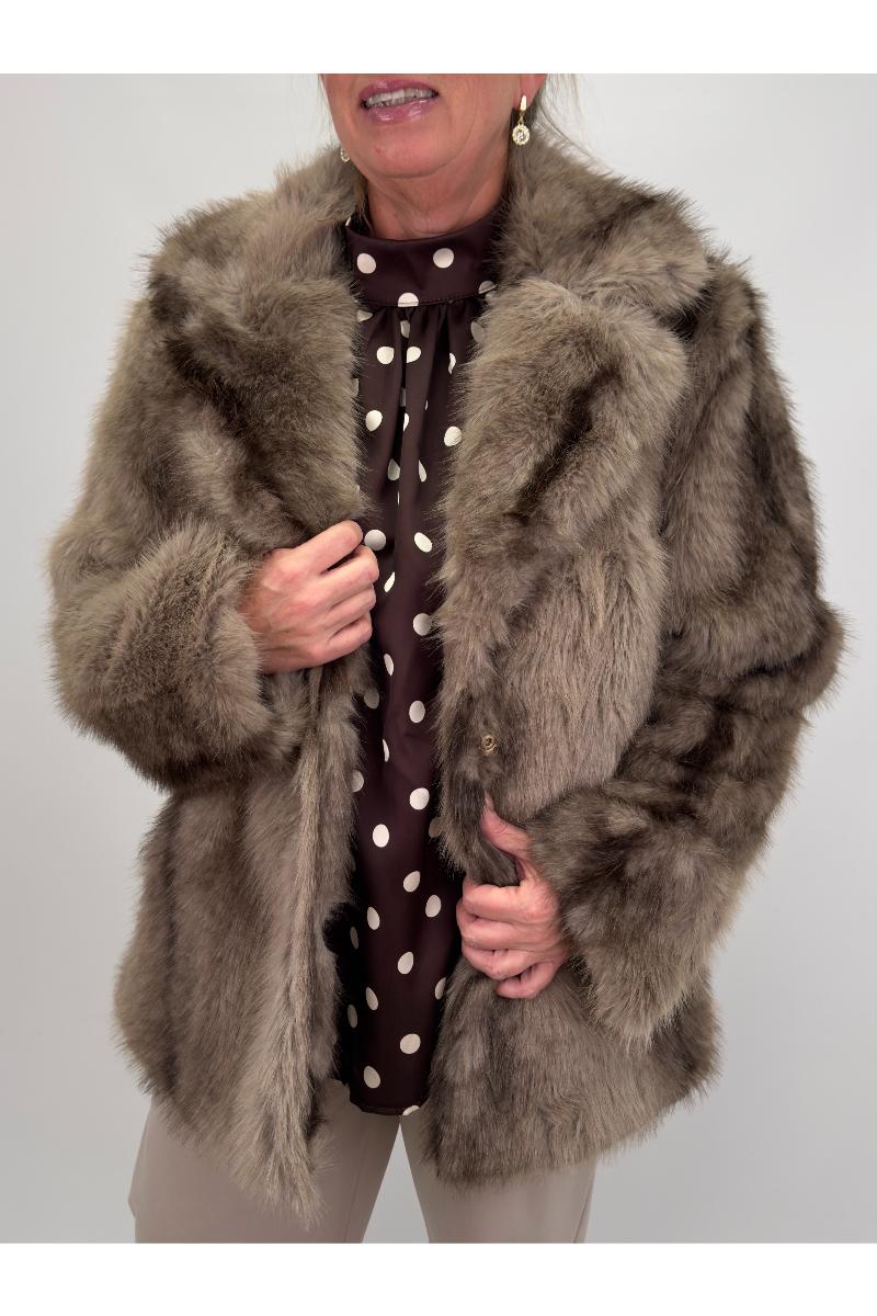 Lyxig kort pälsjacka med en fluffig känsla.