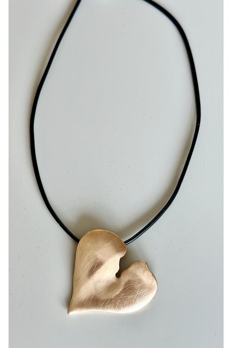 Halsband med läderrem och guldfärgat hjärta.