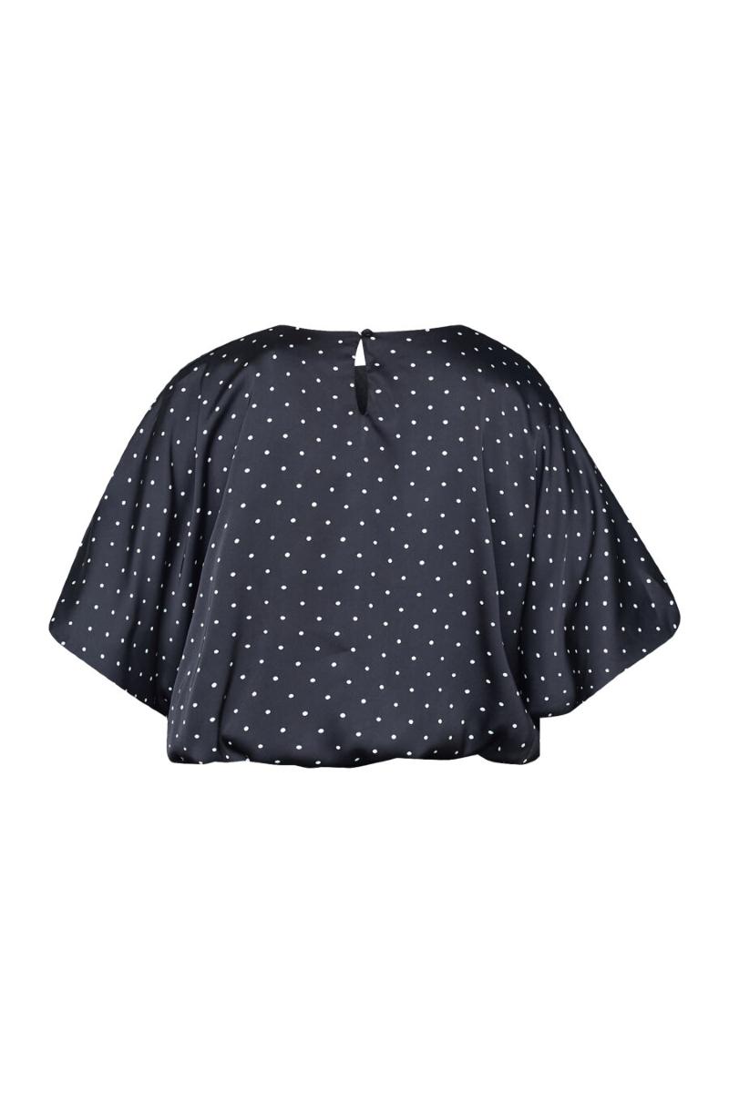 Elegant löstsittande top i skimrande satin med små prickar.