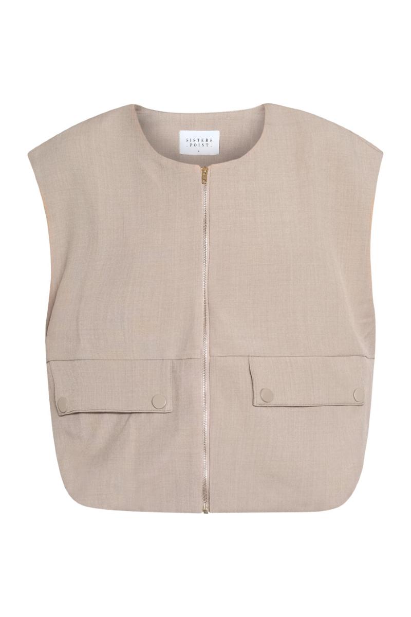 Cool sandfärgad väst. Bröstfickor och dragkedja.