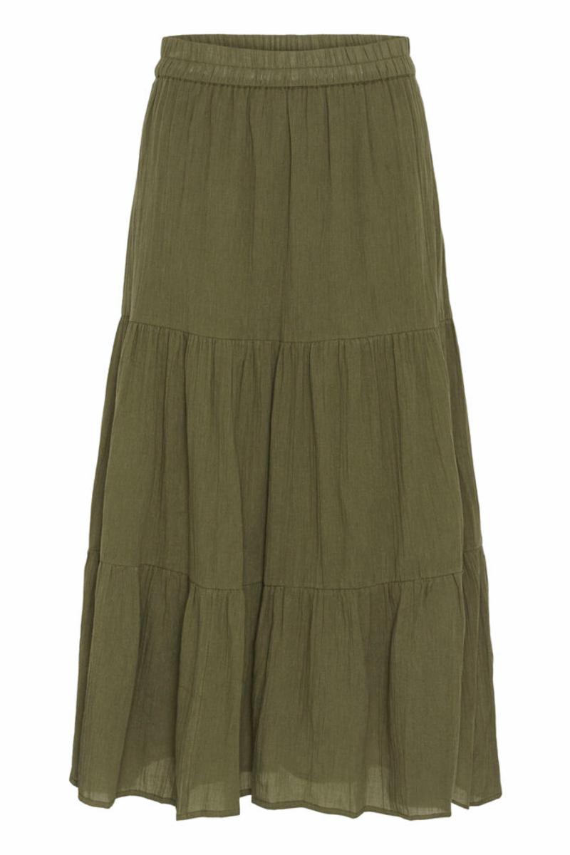 Lång kjol med resår i midjan i 100% bomull.