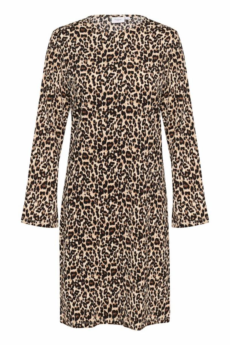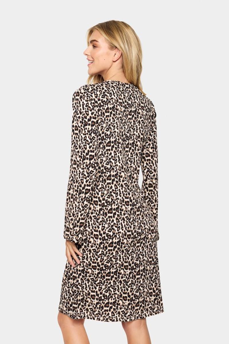 Knälång leopardklänning med en avslappnad passform, långa ärmar och rund halsringning.