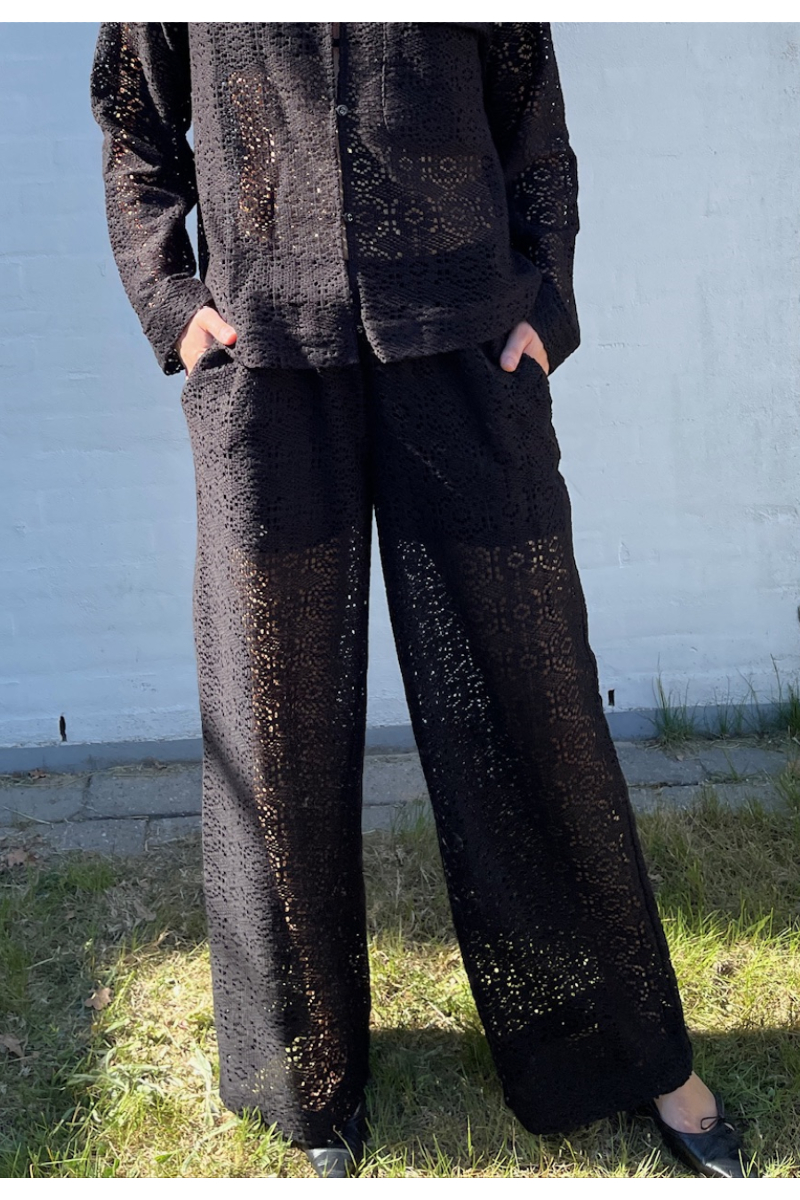 Ett par luftiga byxor i genomvävt mönster.