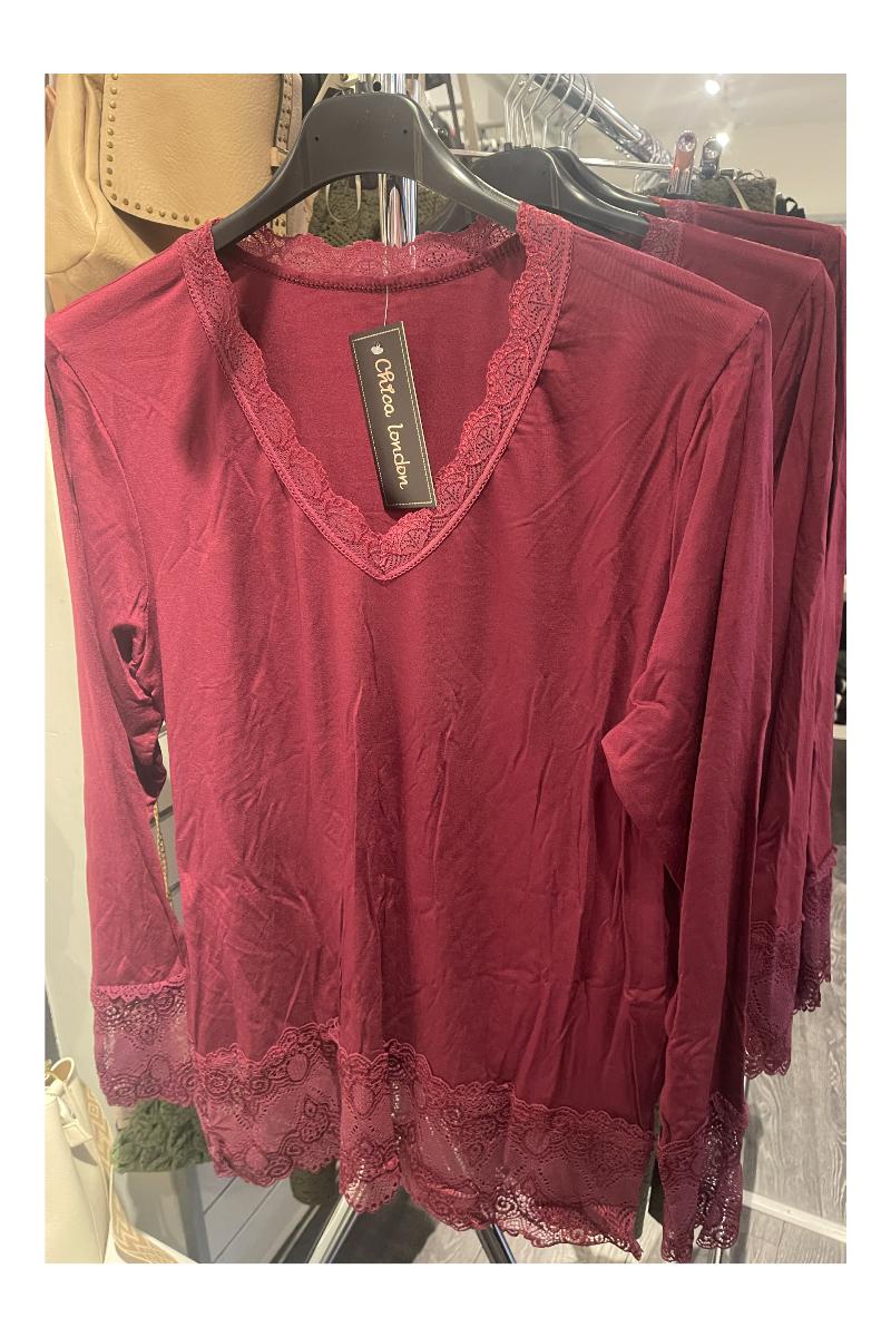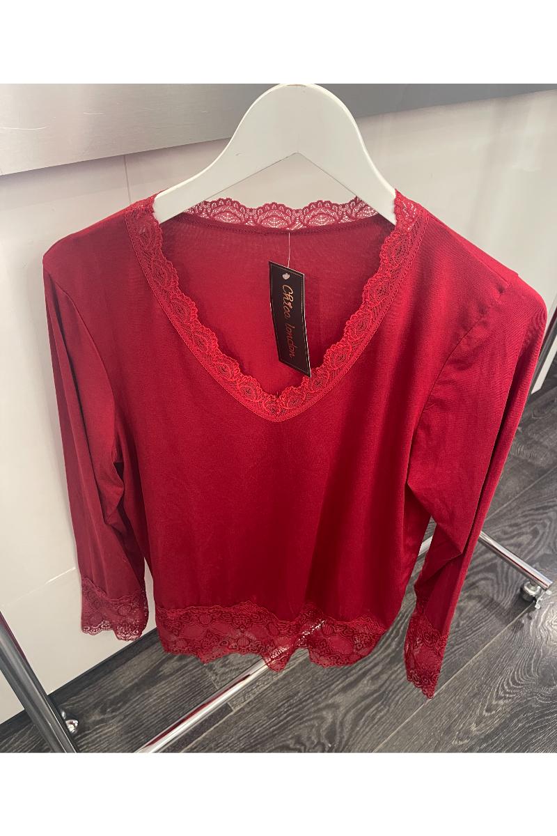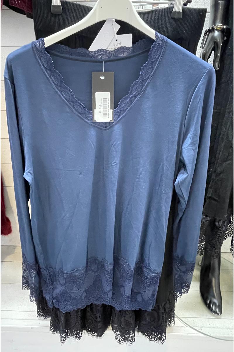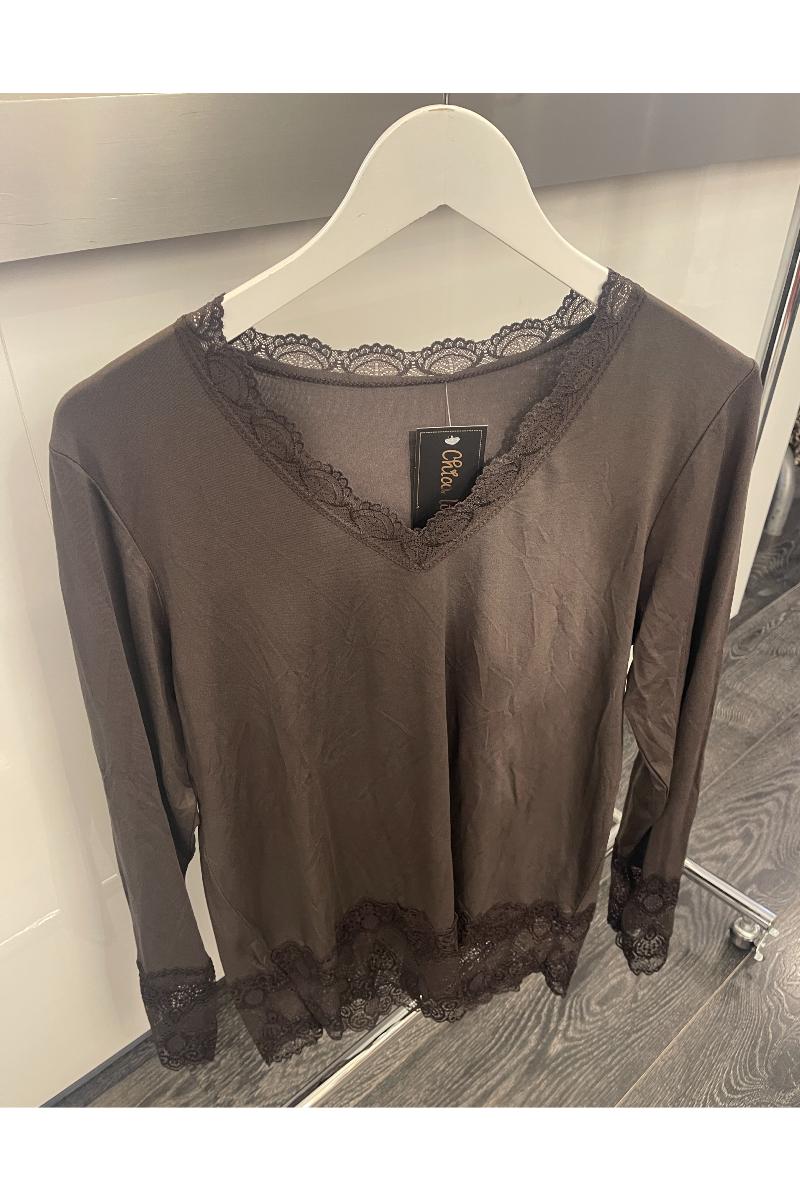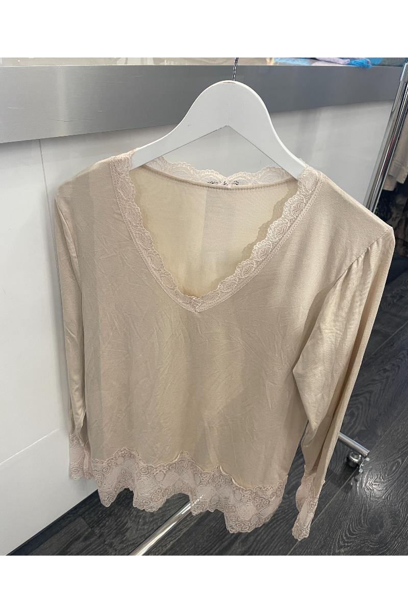 Bred spets nertill och i v-ringningen.