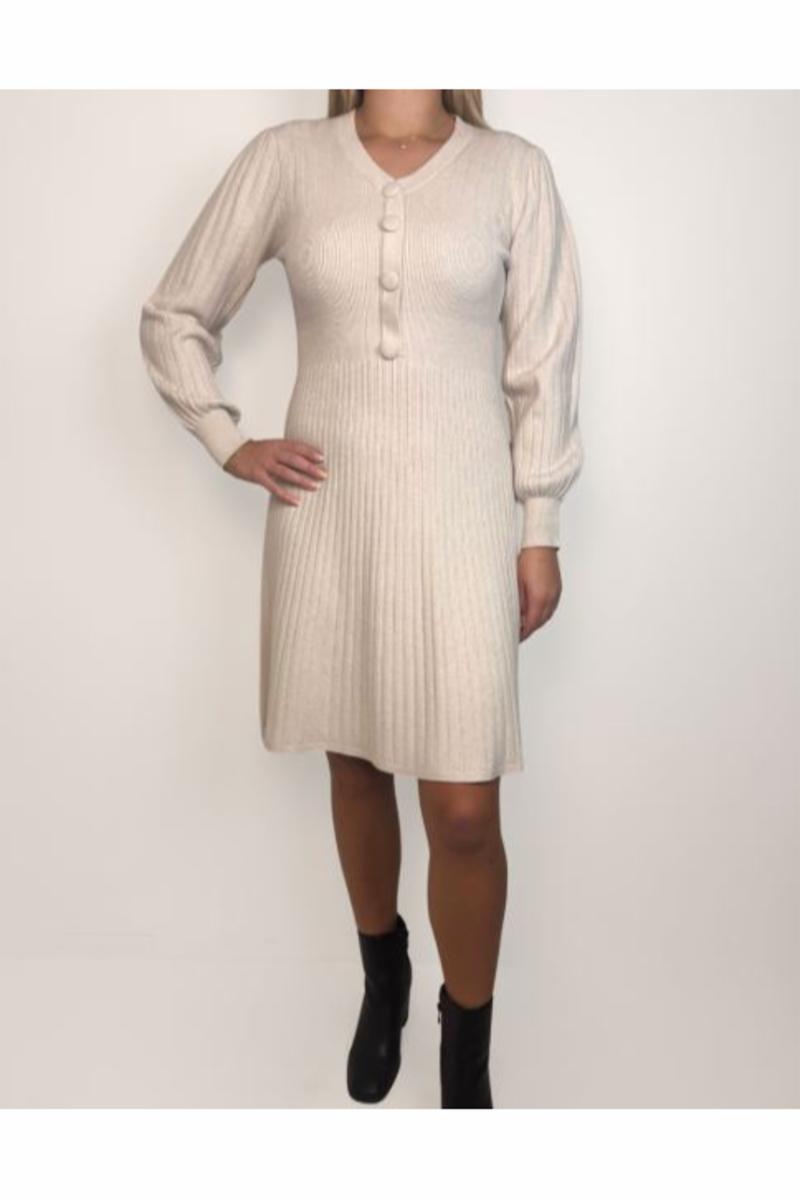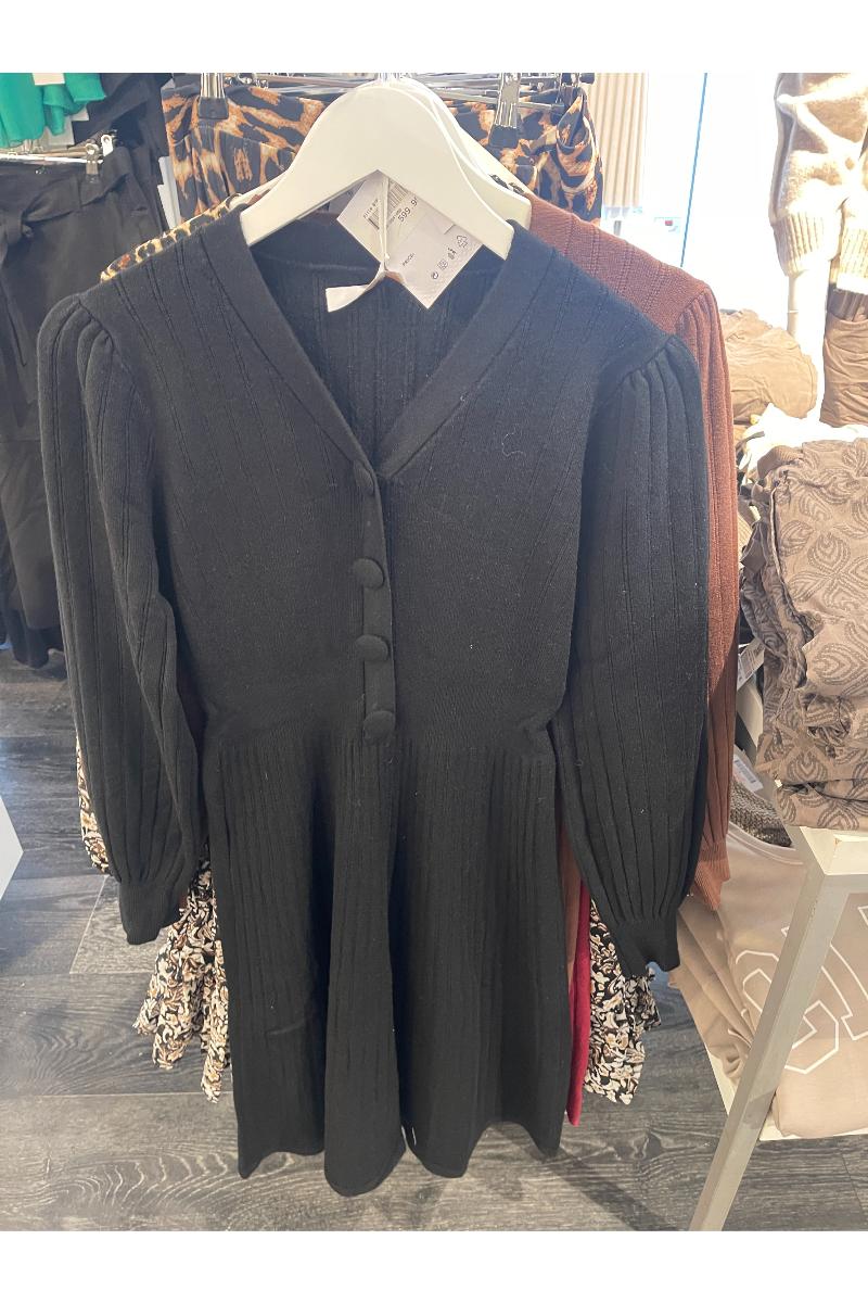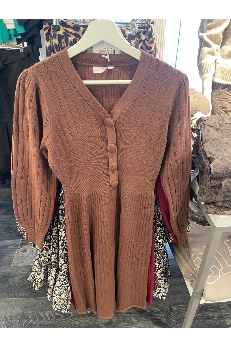 Stickad klänning med lång ärm.
