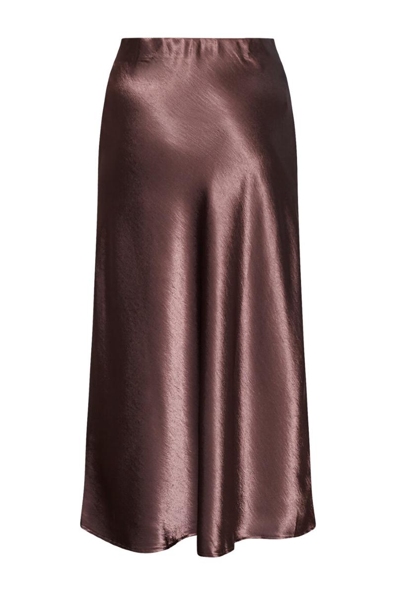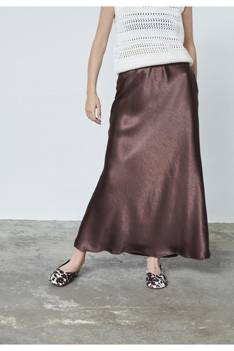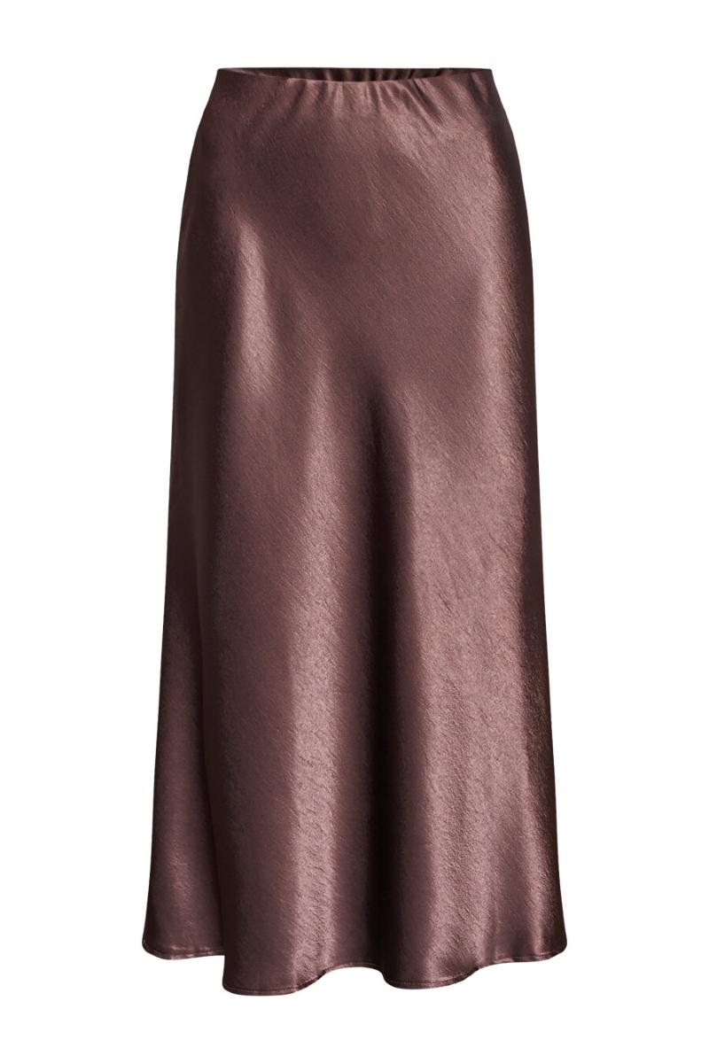 En fin satinkjol i Alinje modell som framhäver figuren.