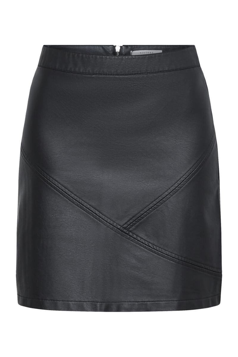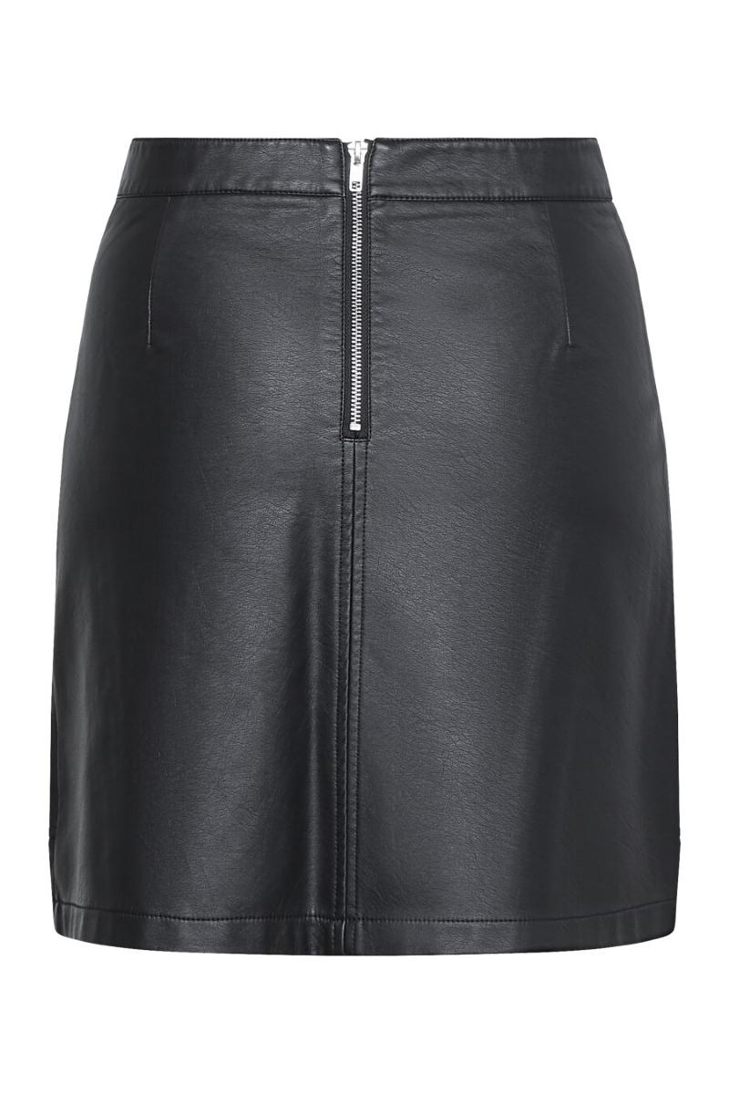 Kort kjol i “fuskskinn”. Dragkedja bak.