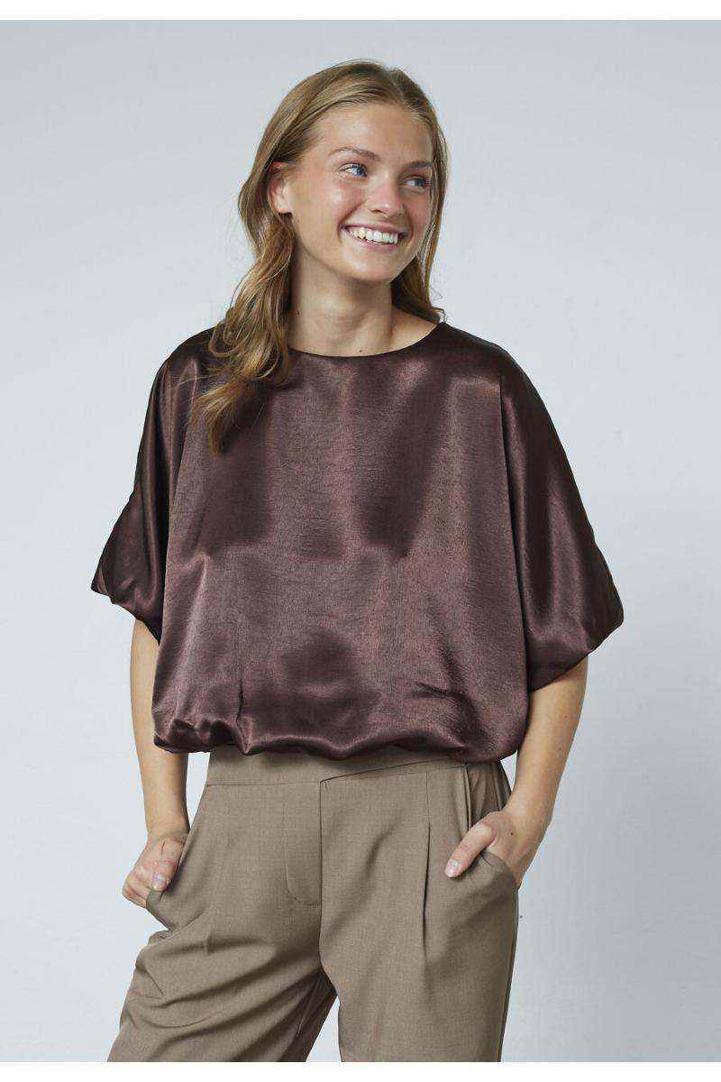Elegant top med fin satinfinish. Lös passform , kort ärm med en modern look.