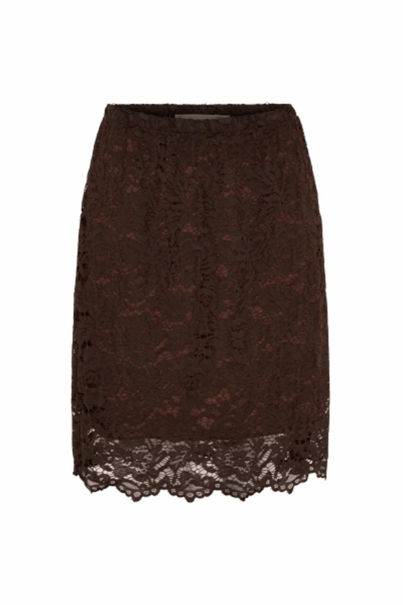 Kortare spetskjol med elastisk midja.
