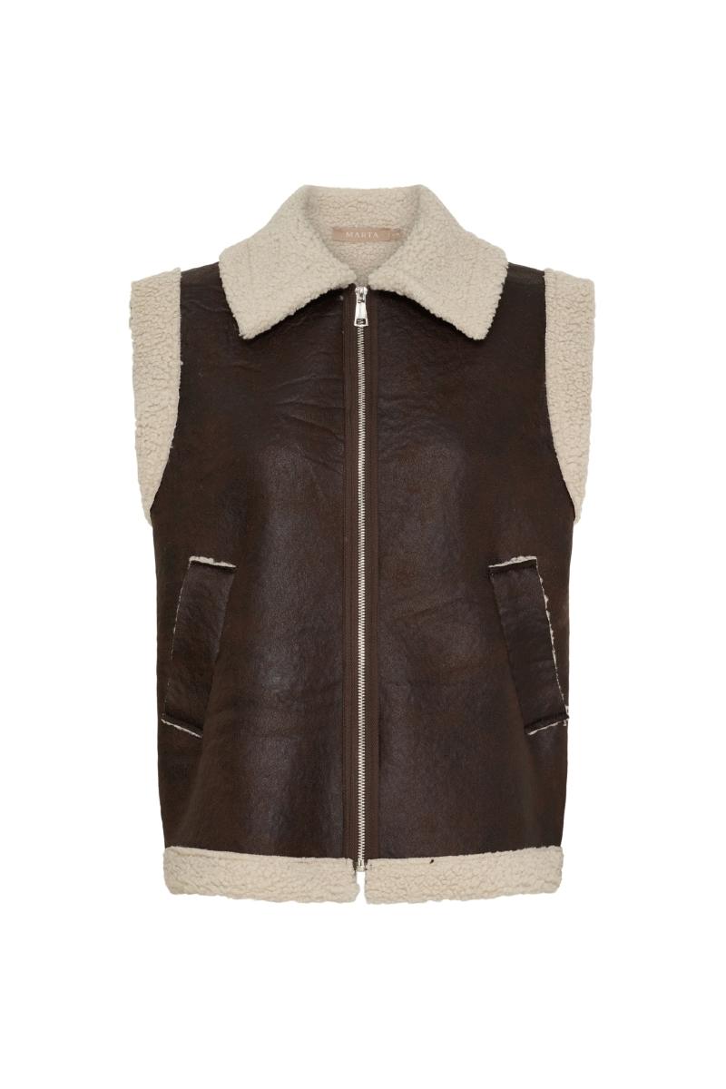 Super cool väst fra Marta Du Château i läderlook och med teddyfoder.Blixtlås och krage.
