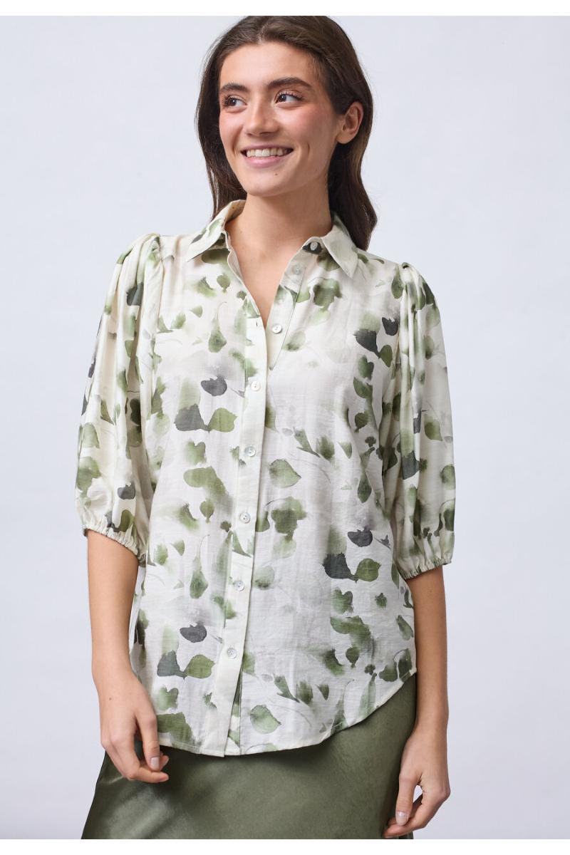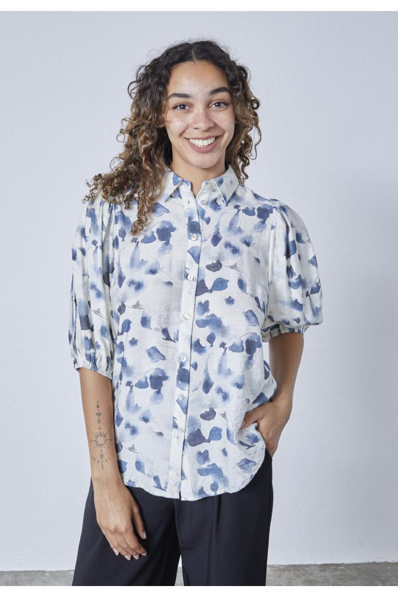 Mönstrad skjorta, klassisk krage och genomgående knappar.