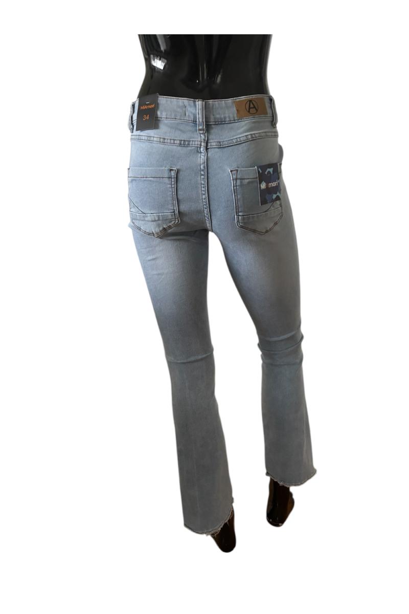 Bootcut jeans med rå kant nertill. Normal midja.