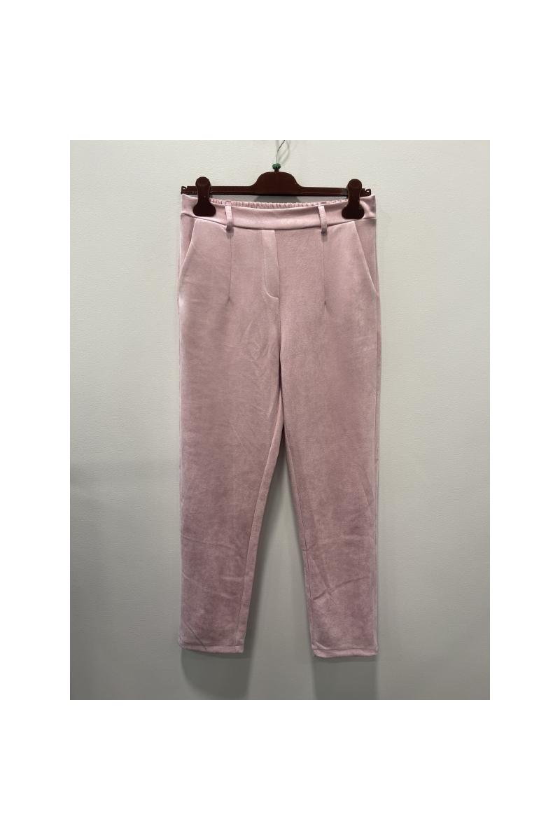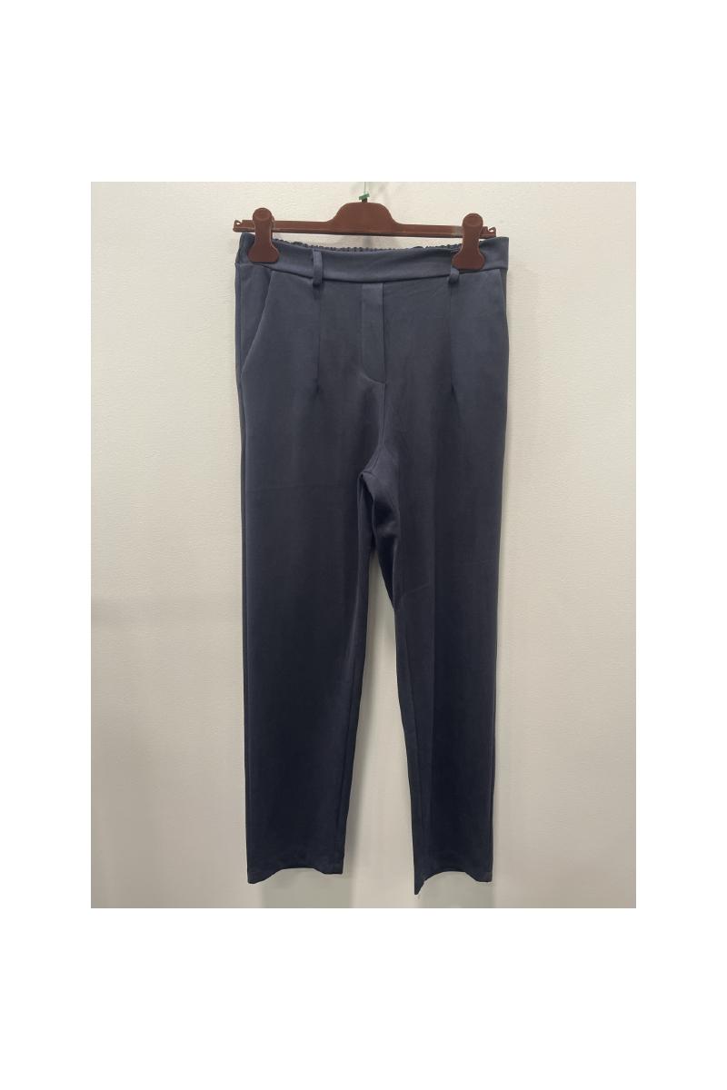 Byxa med slät linning fram, resår bak. Hällor.